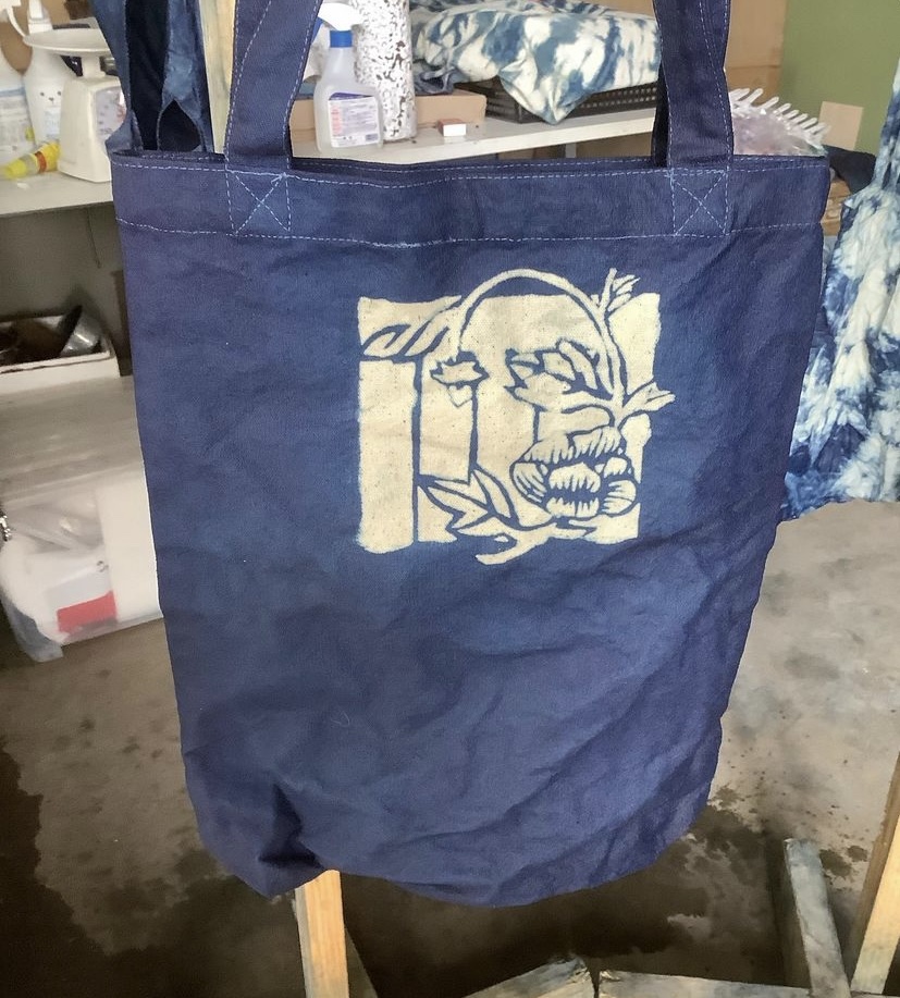 体験では手ぬぐいの雪花絞りやトートバックの型染めなどいろいろな染め方の体験ができます。
